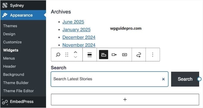 But if you want to add search bar in a new place like sidebar, footer or custom landing page then follow these steps.